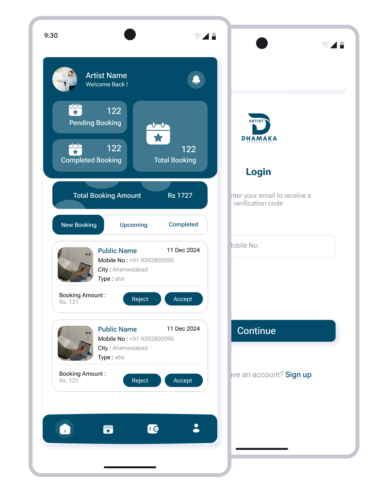 Artist: Manage your profile, showcase your skills, and update your availability. Get verified to boost visibility and attract more bookings from event organizers.